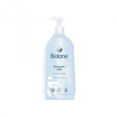 Formulée à 97% d'ingrédients d'origine naturelle, l'Eau Pure H2O Biolane permet de nettoyer parfaitement et en douceur la peau du bébé.