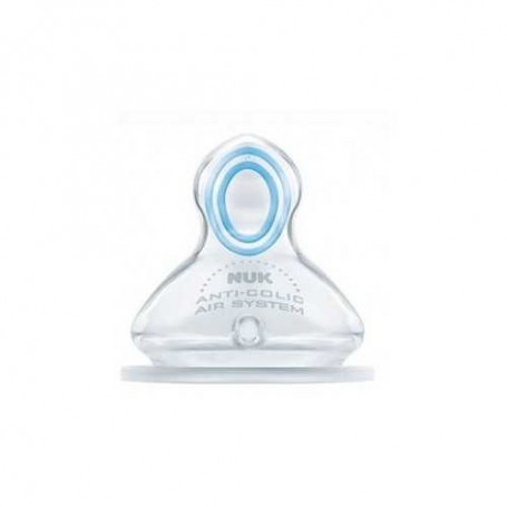 Tétine mise au point par une équipe de médecins, pédiatres et dentistes. Reconnue comme étant la meilleure reproduction du sein maternel. Intègre le système de ventilation Air System afin de réduire les risques de coliques et de hoquets du nourrisson. Préformée à la cavité buccale de bébé, elle est comparable à la forme du mamelon lors de la tétée. Son trou percé sur le dessus au niveau du palais : permet un bon mélange du lait avec la salive optimise la digestion de bébé.